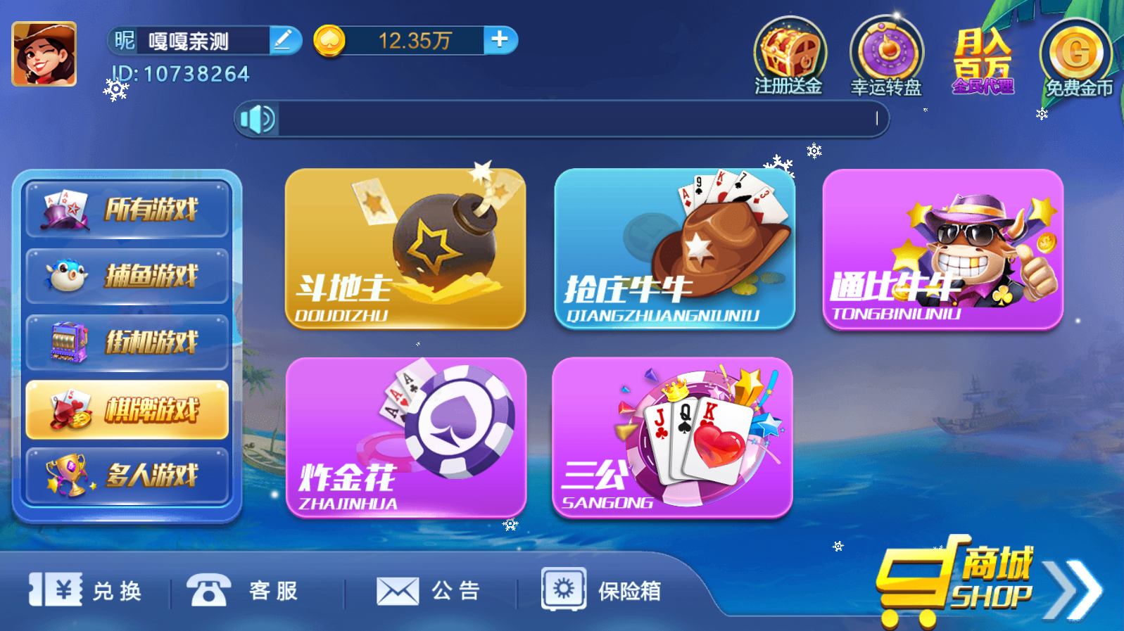 棋牌游戏:斗地主,跑得快,炸金花,德州扑克,三公大吃小,三公,抢庄牛牛,通比牛牛,8人激情牛牛;